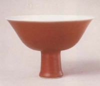 说 明: 白里暗云龙纹,内底心刻篆书"永乐年制"款,外围葵花,器外壁施以鲜艳光亮的铜红釉,晶莹明澈,为永乐时的新品种,称为"鲜红".原为宫廷旧藏.