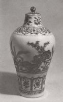 说 明: 釉色幽艳,清新腴润,给人以明快之感.腹部纹饰犹如横幅绘画.此种盖瓶,系盛酒之具,出现于宋代,初名经瓶或长瓶.除了瓶口加塞以外,盖周还可蜡封,以防酒气散逸.