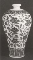说 明: 青花呈色稳定,图案的花瓣及叶片脉络间都留有白边,不填满色,表现出一种立体感,代表了这一时期瓷绘艺术的风格.形体高大,造型规整,具有宣德梅瓶的典型特征.