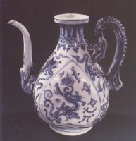 说 明: 青花蓝中泛紫.图案富有神韵,造型幽雅别致.是宣德青花瓷器中的精品.