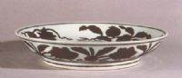 说 明: 白釉刻填酱釉花纹瓷器在宣德时已出现,至弘治时制作更趋精美.酱色和白釉相映,色彩对比新颖,为仿宣之妙品.