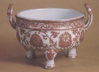 说 明: 胎釉洁白细腻,其上加绘矾红纹饰,彩呈砖红色.图案布局合理,彩绘清晰,表现出宣德时期红彩瓷器的艺术风格.