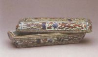 说 明: 胎质细腻,呈灰白色,釉色白中闪青.制作精湛,在万历五彩文具中堪称佳品.