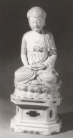说 明: 黄褐色胎,釉白中泛黄,有细开片.釉色温润均匀,塑形比例适当,神态庄严慈祥.