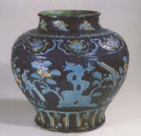 说 明: 瓷胎坚致,色彩具有浓厚的民族风格.法华瓷,始烧于元代而盛行于明清,乾隆以后很少烧制.原多流行于山西蒲州、泽州一带,多为砂瓦胎,江西景德镇仿烧的为瓷胎.