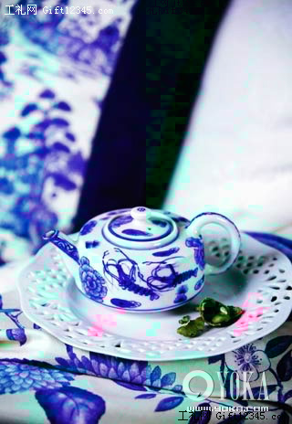 2.用青花图案的茶壶搭配白色英式骨瓷茶盘,正好调和了中式茶壶的端肃,加上古典青花图案的餐巾,一个人的下午茶因此多了几分自在与优雅。