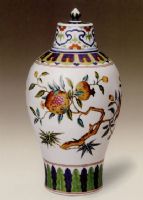 图片名称: 粉彩折枝花果纹带盖梅瓶