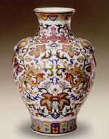 说 明: 此瓶上所绘凤纹被变形夸张,显得很抽象,可能是为了与西洋风格的花卉纹相协调.