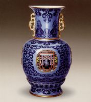 图片名称: 天蓝地粉彩开光镂空转心瓶