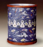 图片名称: 天蓝地粉彩云鹤蝙蝠纹干支旋转笔筒