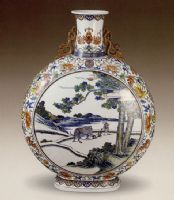 说 明: 此瓶造型仿古扁壶式,雄浑气魄,所绘纹饰为田园农耕小景,在官窑中实属罕见,堪称难得.