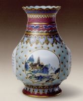 图片名称: 珐琅彩豆青地开光山水图瓶
