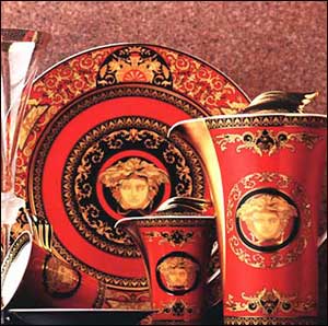 Versace的餐具和这个品牌的服装一样,充满了一种“皇族气息”,尊贵的红、黑、金色无处不在,“蛇妖”梅杜莎的头像闪耀着独一无二的经典光芒。