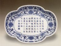 说 明: 此器形似海棠花.传世品中有较多嘉庆丁巳款的青花和粉彩瓷器,均属同一批官窑产品.
