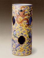 图片名称: 黄地粉彩云龙纹镂空帽筒