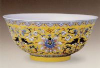 图片名称: 黄地粉彩缠枝莲双鱼纹碗