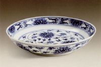 说 明: 宣统青花缠枝莲纹盘为继承前朝传统器型纹饰而作,青花发色稳定,色泽均一,纹饰线条孱弱,具有典型清末瓷器风格.