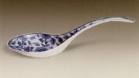 说 明: 此器为近世常见的日用器汤匙样式,内画青花折枝莲花纹,青花模糊,图案不清晰,底书纪年堂名款.在宣统朝传世青花瓷中书纪年款的作品,有碗、盘、匙等几种.