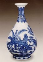 说 明: 此瓶造型秀丽,纹饰主体部份用写实手法绘画,意境高雅,此纹饰题材为后代瓷器广泛采用,成为明、清两代青花瓷器中的传统装饰题材.