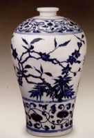 说 明: 此瓶通体绘三层纹饰,施青白色釉,青花色泽浓重.