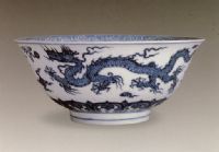 说 明: 龙纹为明、清两代官窑器物的常见装饰题材.除青花外,还有釉里红、酱彩等品种.此碗无款识,内壁光素无纹饰,外壁绘双龙戏珠,动感强烈.