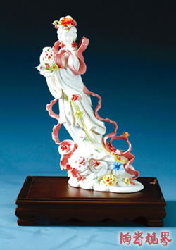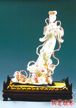 在飞天艺瓷作品展示厅,传统佛像、人物、飞天系列、红釉系列、结晶系列、纯白瓷系列……各式陶瓷品类一应俱全。很多业内人士这样评价:“飞天的品牌很响,而且能真正赚到钱。”郑家兄弟将传统瓷雕产业化的路子走得越来越宽。“艺术上精益求精,迎合市场需求,面向普通消费大众。”郑雄伟这样解释他们的成功。