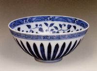 说 明: 此碗胎质细白,白釉泛青.纹饰绚丽明快.