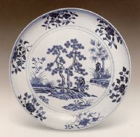 说 明: 胎薄质细,构图严谨,青花浓艳,所绘图案清幽雅丽,意境深远.此盘尺寸较大,烧造难成,为永乐时期罕见的精品.