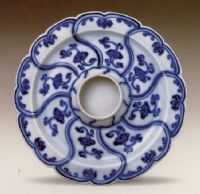 说 明: 此盘造型别致,灵芝纹是永乐时期的装饰题材之一,常饰于盘、盘托、瓶、碗等器物上.此题材为宣德时期瓷器广泛使用,成为最常见的纹饰题材之一.
