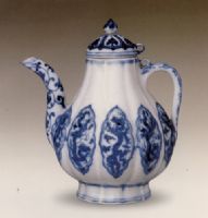 说 明: 壶通体呈十棱式,分布十个菱花式开光,内绘云龙纹.壶附伞形盖.外底有青花双圈六字双行楷书款.