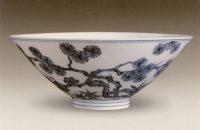 说 明: 此碗造型端正,画面简洁,青花色泽浓丽,笔触刚劲,是宣德青花瓷器中的优秀作品.