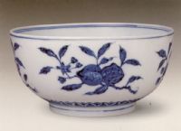 说 明: 宣德瓷碗样式很多,此种直口碗,形象墩厚,故名"墩式碗",其品种有红釉、蓝釉、黄釉、青花等.