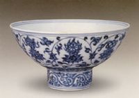 说 明: 此碗釉面晶莹光亮,胎骨缜密坚硬,青花色泽浓艳,是明代不可多得的艺术珍品.