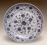 说 明: 这种带有浓厚异族风情的大盘,应是当时海外贸易发展的产物,是专为外销阿拉伯人或为赏赐而特制的产品,是永乐、宣德时期所独有的器物造型.