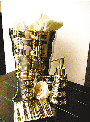 这一五件套的卫浴组合亮点就在于其不俗的光洁质感和奇特造型,这种波浪似的曲线使用在金属材质上时,既有男人的硬朗,又有女人的柔媚,完美的结合带来不一样的魅力。