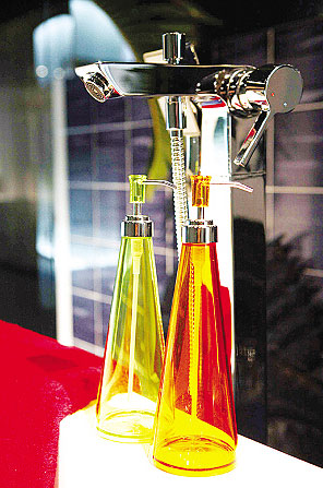 这一产品晶莹剔透的红色非常引人注目,最吸引眼球的是它们的造型,仿佛盛开的鲜花绽放在卫浴的洗手台上。