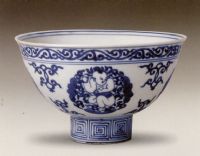说 明: 此碗构图新颖,描绘生动,婴孩娇憨之态惟妙惟肖.足内青花双长方框内楷书仿款"大明宣德年造".是隆庆青花瓷器的精美作品.