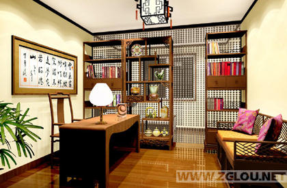 按兑宅坐向看,此套住宅正西方为“文昌位”所在,将书房设于此,再好不过。书房中书桌与书柜的摆放,同样要做到书桌坐吉,书柜坐凶,以成仁智之居,同时座椅后需有“靠山”,以帮助稳定心绪,集中精力。故此书房中书桌的摆放背靠临近次卧的墙,书架置于临时卧室之间,又起到阻隔与分区的功能。书房原为开放式,但与次卫和主卧门相对,不宜。故在中间部位错位设推拉门,并做适当装饰。