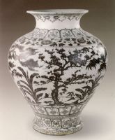 说 明: 此件胎体厚重,造型雄健.纹饰虽层次繁多,但主次分明.画意澹远雅洁,为洪武时珍品.
