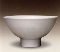 说 明: 通体及足内均施白釉,釉色白中略泛青.外壁暗划花纹装饰,内口沿处暗划弦线两道.
