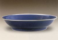 说 明: 通体蓝釉,色调均匀深艳,呈色稳定,犹如蓝宝石.底部白釉青花双圈内书"大明宣德年制"两行六字款.