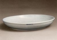 说 明: 宣德时青花绘把莲纹的盘子较多,但豆青釉刻划暗花的盘却少,故而十分珍贵.