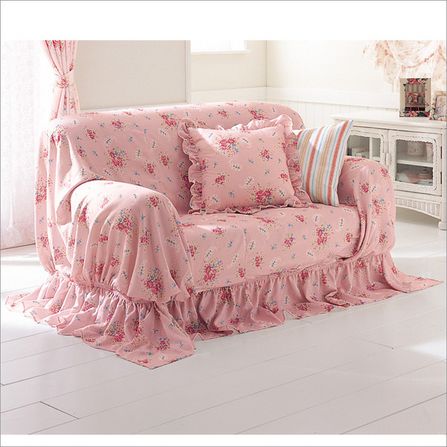粉色沙发,舒适、慵懒,花边的设计也很到位。