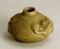 说 明: 这件水注年代较早,釉色淡青雅致,滋润晶莹.造型别致,蛙形生动.是越窑早期青瓷中的精品.