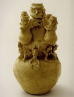 说 明: 五联罐起源于东汉中期前后,在明器中具有五谷丰登之意.此种以人物造型为五管的产品,实属罕见.