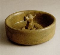 说 明: 圈作钵形,犬侧躺于地,昂首远眺,活泼可爱.