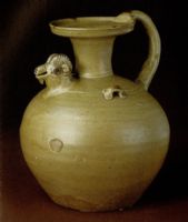 说 明: 西晋盛行的带状印纹已消失,被划于肩部的双弦纹代替,形成了装饰简朴,以褐斑为特点的新风格.
