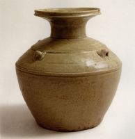 说 明: 大盘口,短颈,斜肩上有四个横系,折腹,平底.