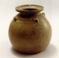 说 明: 此壶口部点缀褐色点彩.肩部附有四个横系.