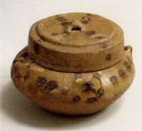 说 明: 此器的褐色点彩较丰富,盖顶分布成"十"字形,肩部点缀一周,又以耳为中心,绕一圈,求得变化.